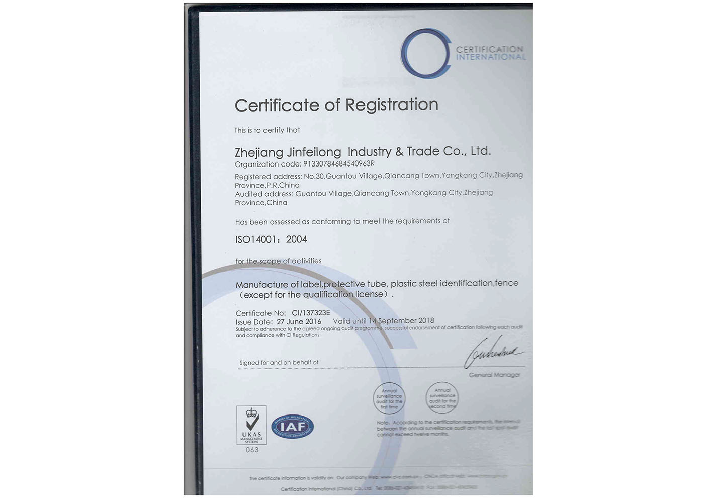 质量管理体系认证证书(英文)