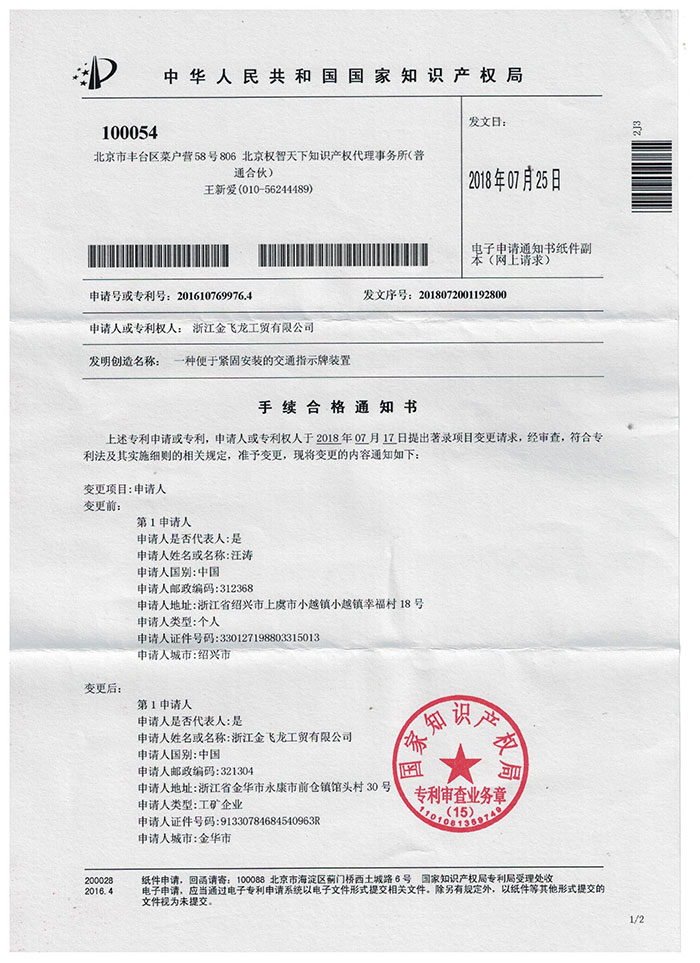 浙江金飞龙工贸有限公司 备案号: