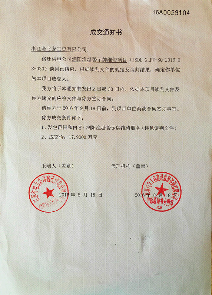 10.26盐城中标通知书