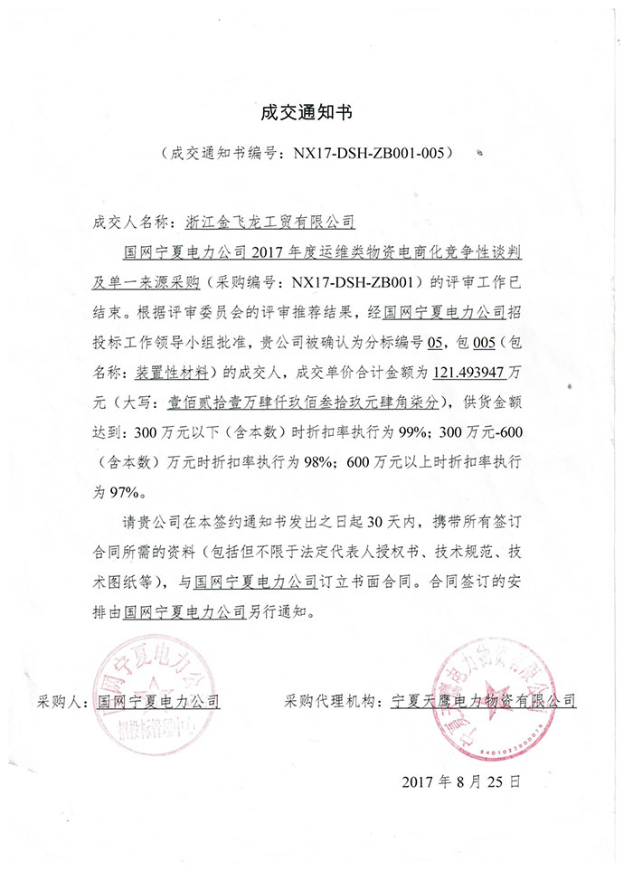 浙江金飞龙工贸有限公司 备案号: